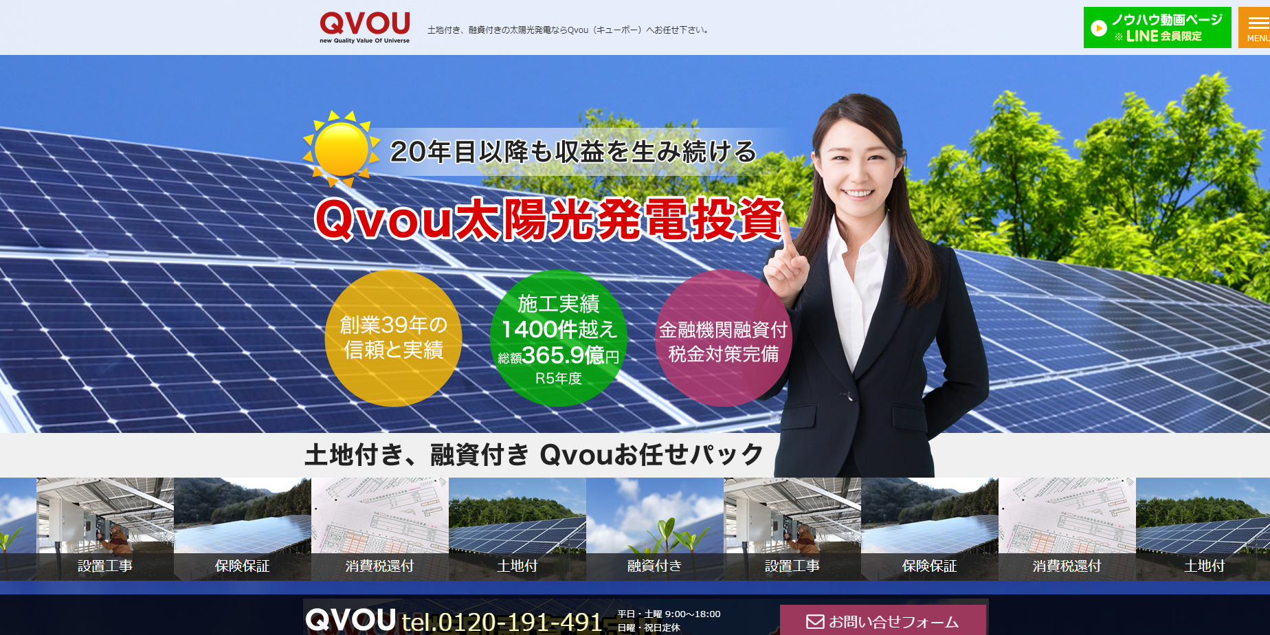 | 15年以上の「長期施工保証」はありますか? | 〇 | 契約期間中はQvouの所有物であるため、メンテナンスや保証はQvouの責任で行われます。これはTPOモデルのメリットです。 |