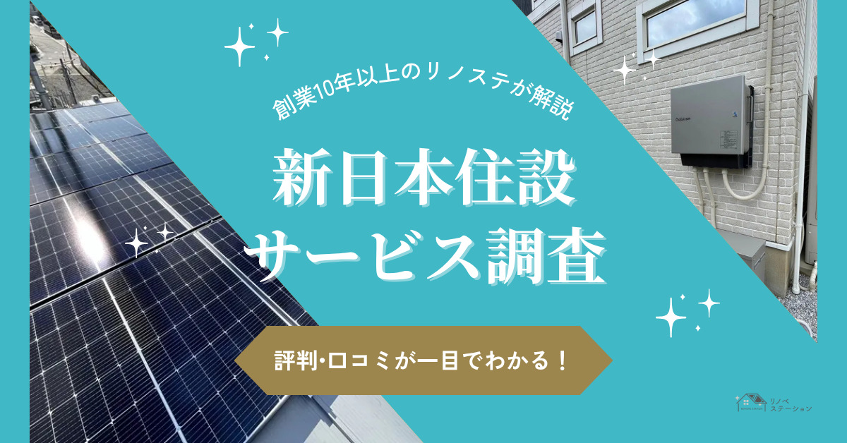 - 1 新日本住設の評判・口コミは?創業10年以上のリノステ監修の診断項目で特徴を徹底解説