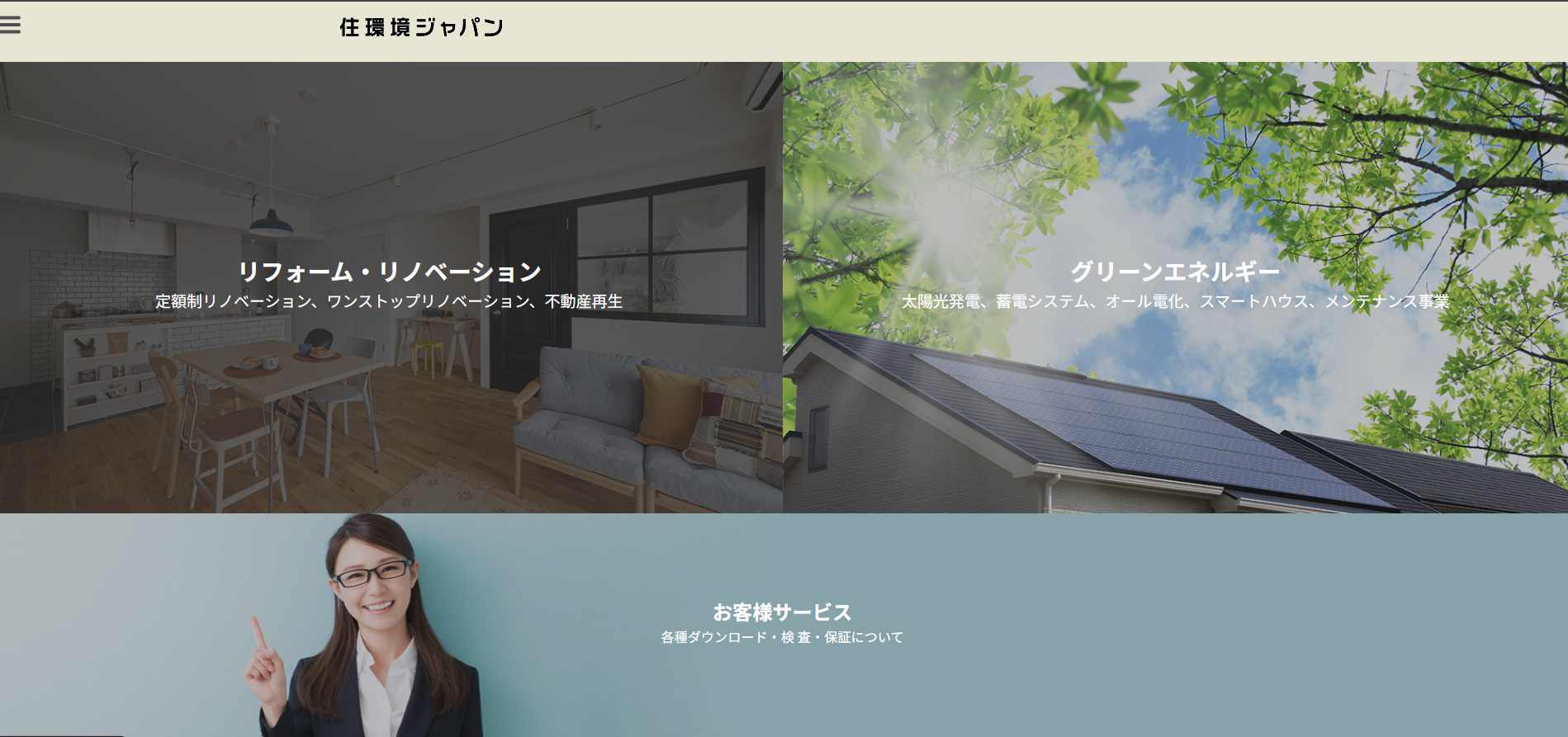 太陽光発電や蓄電池の導入を検討する際、1979年創業という長い歴史を持つ「株式会社 住環境ジャパン」は、その実績から信頼できる選択肢の一つとして浮上します。リフォームやリノベーション事業も手掛けており、住宅に関する知見が深い点も魅力に映るかもしれません。