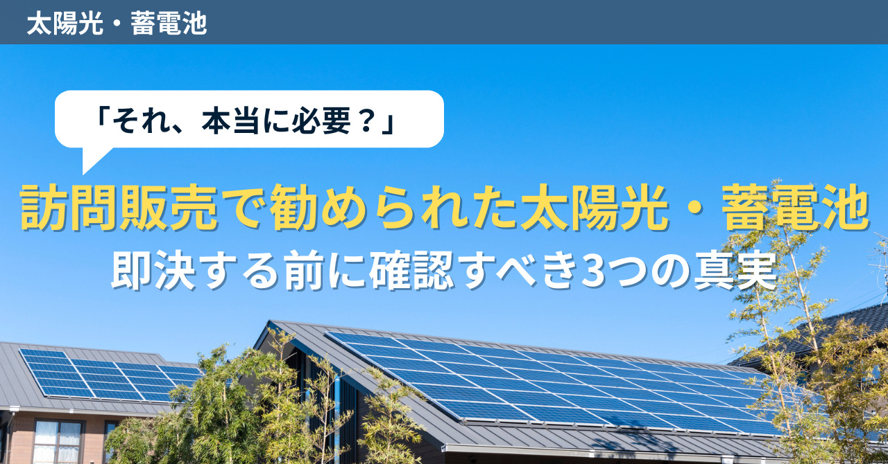 その他 その他に関する情報を公開しております。ぜひご活用ください。 ebook_banner_1200340_221018solar_ebook_bnr_topリノベステーション公式LINEebook_banner_1200340_221018 蓄電池 太陽光発電 屋根・外壁塗装 オール電化 エコキュート トイレ・洗面台 メンテナンス 補助金 EV・V2H その他リフォーム 比較記事 セミナー・勉強会 太陽光5kWの売電収入はいくら?2026年の最新シミュレーションと初期費用の回収期間を徹底解説 その他 太陽光発電 2026年02月06日更新 【太陽光・蓄電池】営業に「今だけ補助金が使えます」と言われたときに確認すべき3つのこと その他 2026年02月13日更新 あなたの家は大丈夫?停電リスクが高い地域か確認する方法と今すぐできる備え その他 2026年02月06日更新 「それ、本当に必要?」訪問販売で勧められた太陽光・蓄電池 即決する前に確認すべき3つの真実 その他 2026年02月19日更新 【太陽光・蓄電池】セールス資料に載っていない追加費用(電気工事・基礎工事など)がありそうなときのチェックリスト その他 太陽光発電 蓄電池 2026年02月06日更新 高齢の親と同居する家庭の停電対策:命と安心を考える蓄電池ガイド その他 2026年02月19日更新 【太陽光・蓄電池】メーカー指定・工事店指定がある見積もりを他社と比べるときの見方 その他 太陽光発電 蓄電池 2026年02月06日更新 【太陽光・蓄電池】複数社の見積もり比較で失敗しないために!ズレやすい項目チェックリスト その他 2026年02月13日更新 太陽光発電・蓄電池の賢い導入ガイド 電気代高騰から家計を守る最新戦略 その他 2026年02月05日更新