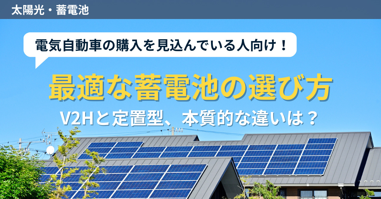 意外かもしれませんが、蓄電池選びの前に、まず考えるべきは「将来(5年〜10年以内)にEVまたはPHEVを購入し、V2H(家と車で電気をやり取りするシステム)を使いたいか?」です。